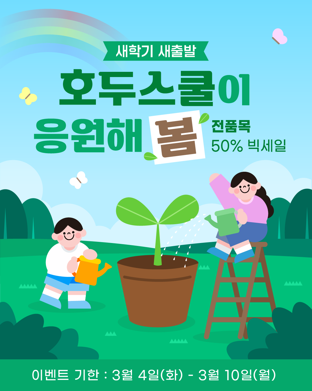 호두스쿨 새학기 응원 빅세일 소식을 전달해주세요!